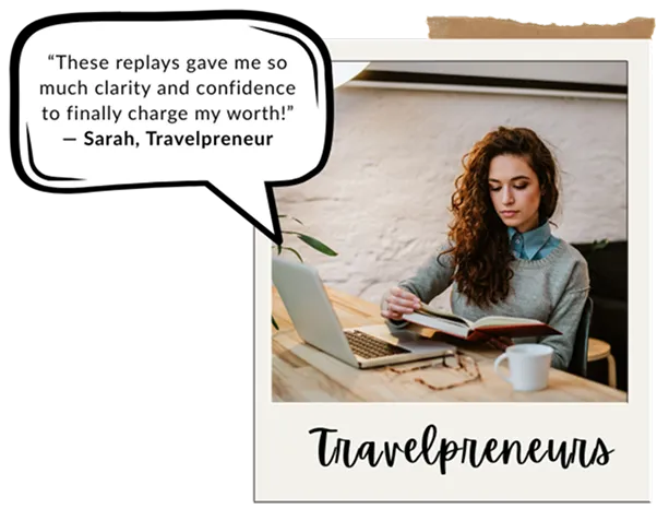 These aren’t just replays — they’re your second chance to master the exact blueprint that’s helped hundreds of travelpreneurs turn their side hustle into a profitable, freedom-based business.